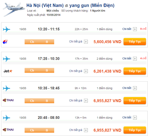 BẢNG GIÁ VÉ MÁY BAY ĐI YANGON THAM KHẢO